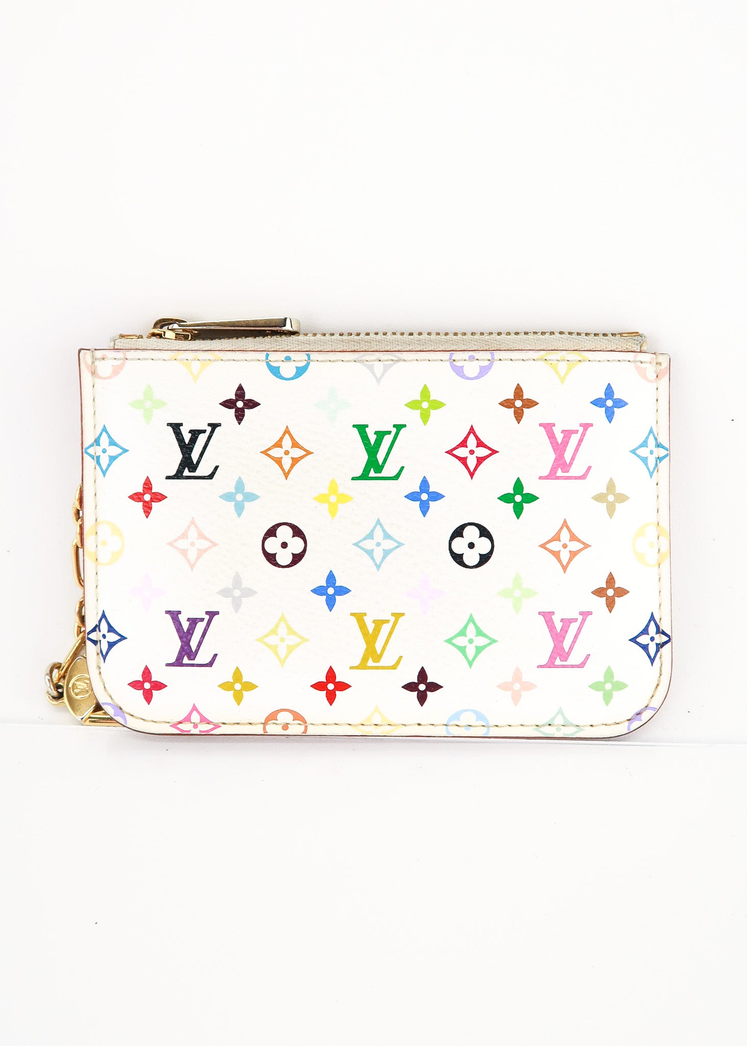 Limited edition alert!! Don't wait to grab this key pouch as they are no longer available at LV! This key pouch features a zipper top, back pocket and keychain making it easy to attach to your keys! The monogram print is in bright colors making it fun and easy to stand out! Inside is a bright pink. Designer Arm Candy guarantees 100% authenticity of this item. See pics for more details.