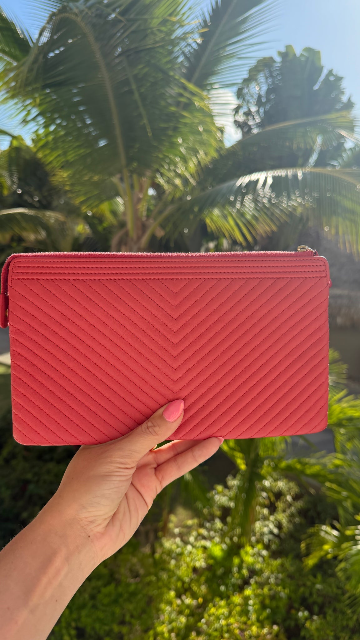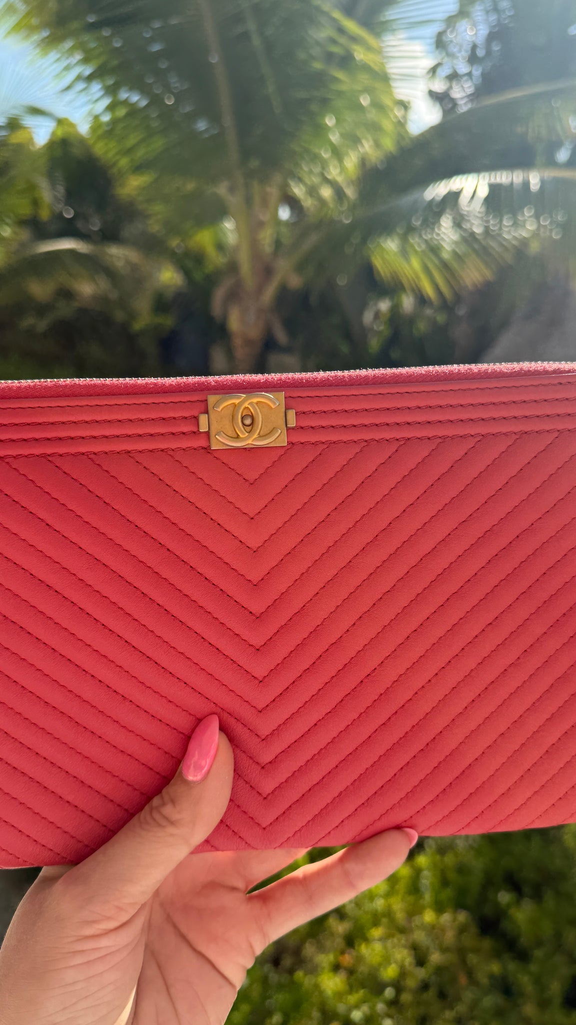 This Chanel Lambskin Boy Clutch in Pink features a rectangle shape, zipper opening with snap at the end, roomy interior with center zipper pocket! Perfect to fit your phone in and everything you need for a night out or special event! Designer Arm Candy guarantees 100% authenticity of this item. See pics for more details.