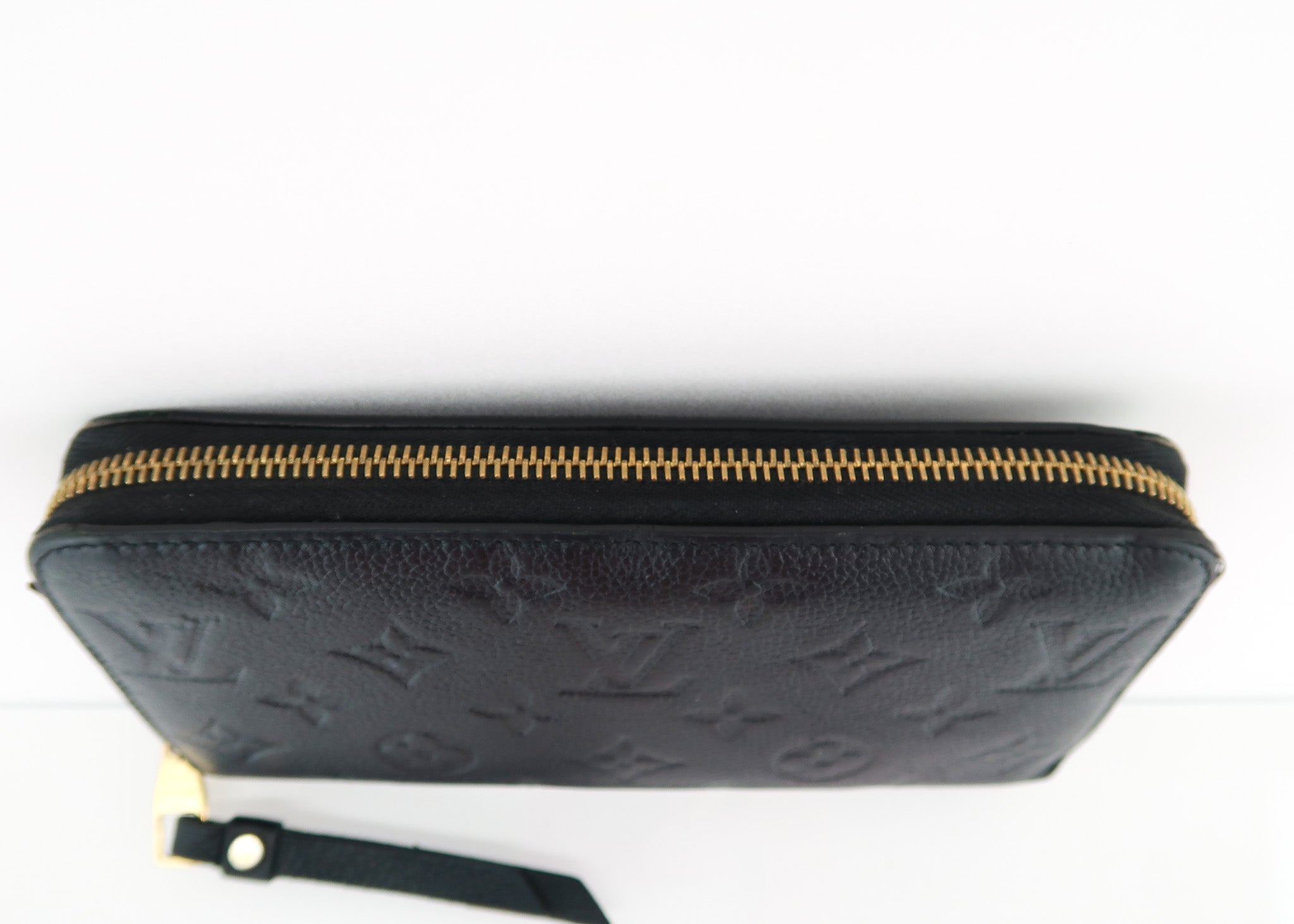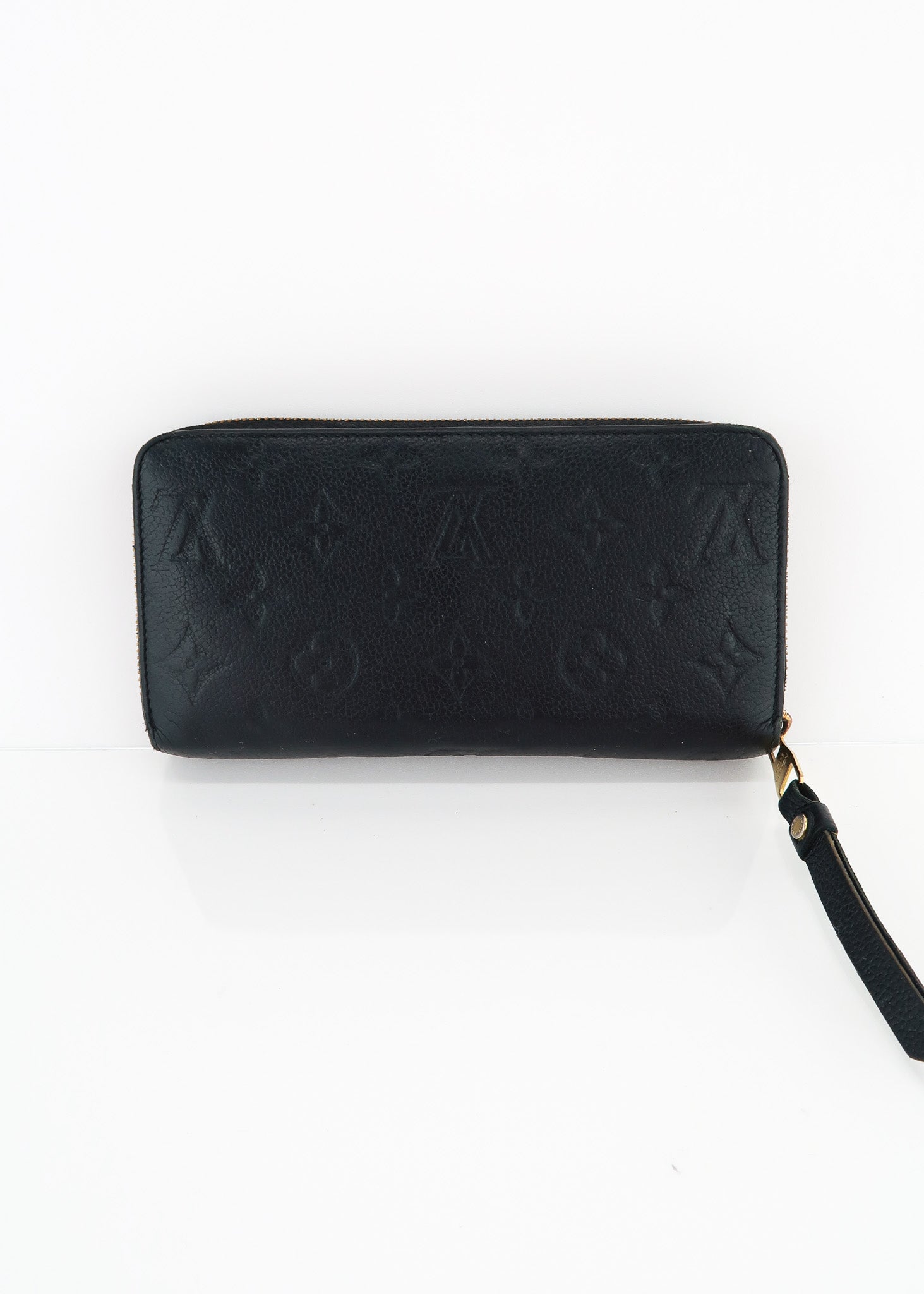 This Louis Vuitton Empreinte leather wallet in black features a long shape that zips around all three sides. The inside features 8 card slots, center change pocket, two side wall slots and two big gusset pockets. Designer Arm Candy guarantees 100% authenticity of this item. See pics for more details.