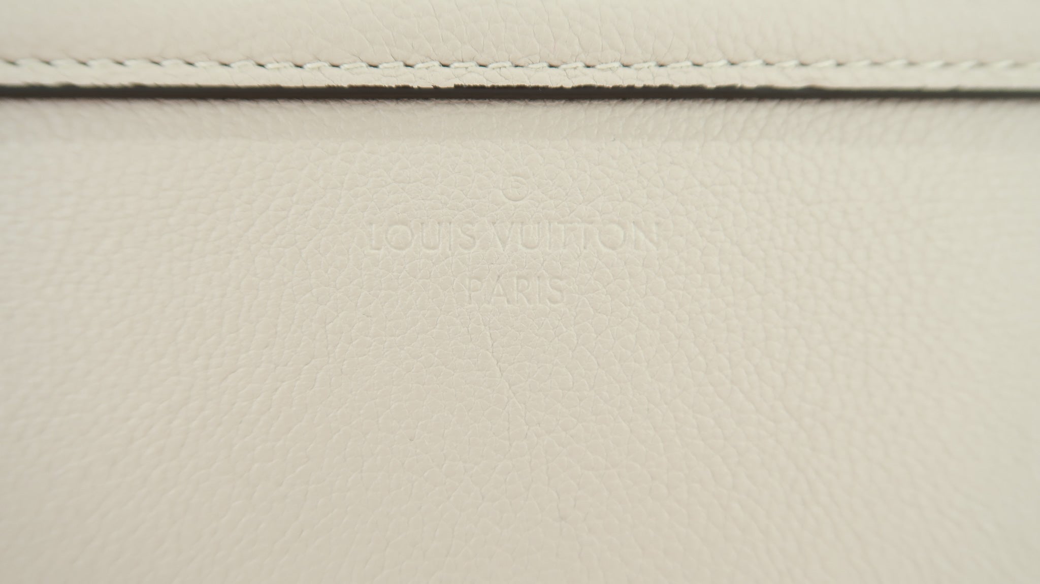 Now discontinued! Way under retail! This Louis Vuitton Lockme Tender in Greige features a two tone beige and Greige exterior, twist lock entry, front pocket, roomy interior with back pocket, removable chain and adjustable two tone leather crossbody! Designer Arm Candy guarantees 100% authenticity of this item. See pics for more details.
