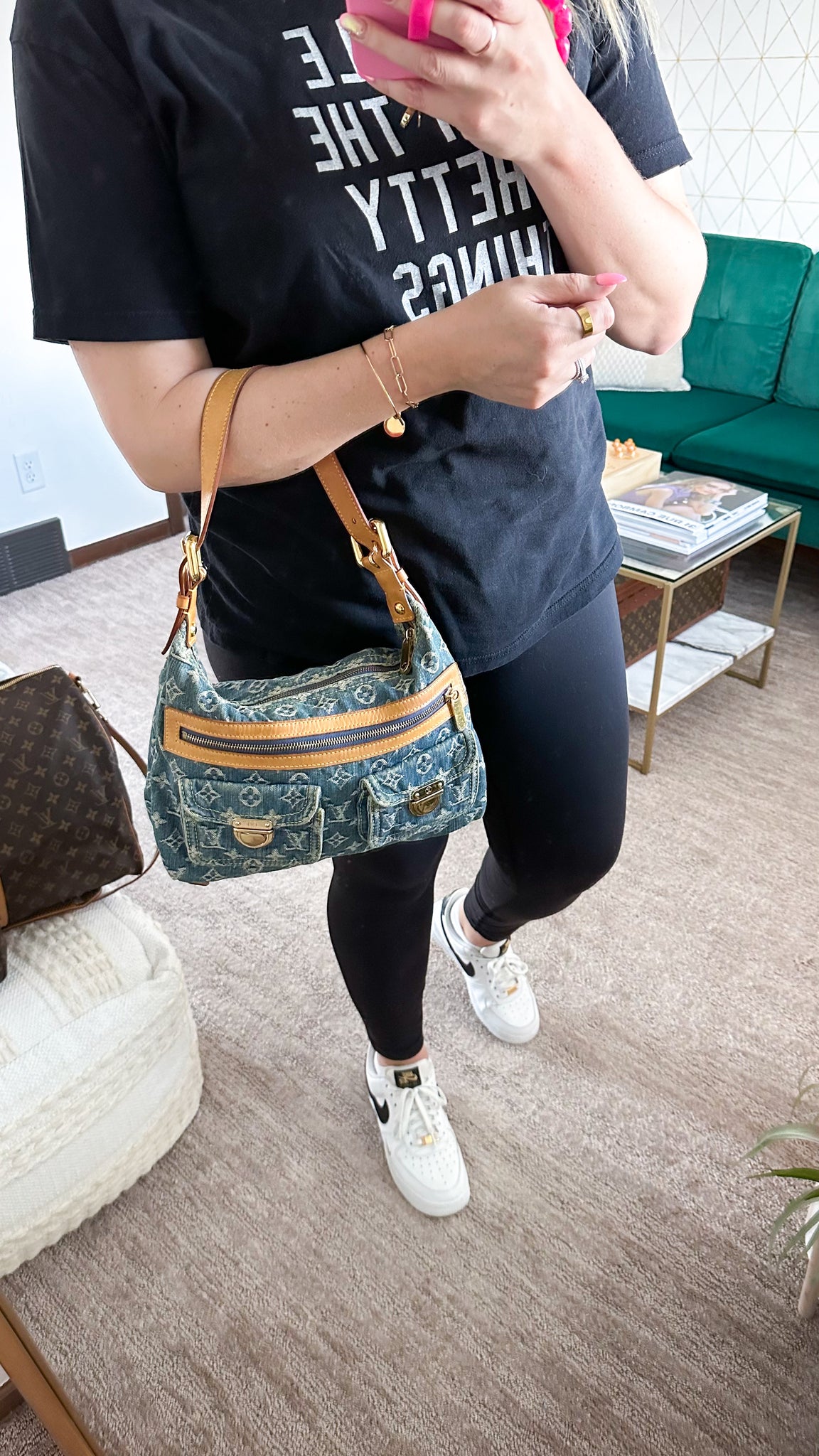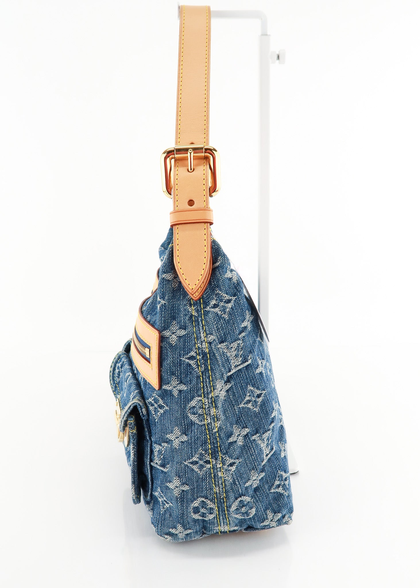 This Louis Vuitton Monogram Baggy PM in Blue Denim features a shoulder bag style, wide comfortable shoulder strap that is adjustable, front zipper pocket, protective feet on base and a wide roomy yellow interior that will fit bigger items! Designer Arm Candy guarantees 100% authenticity of this item. See pics for more details.