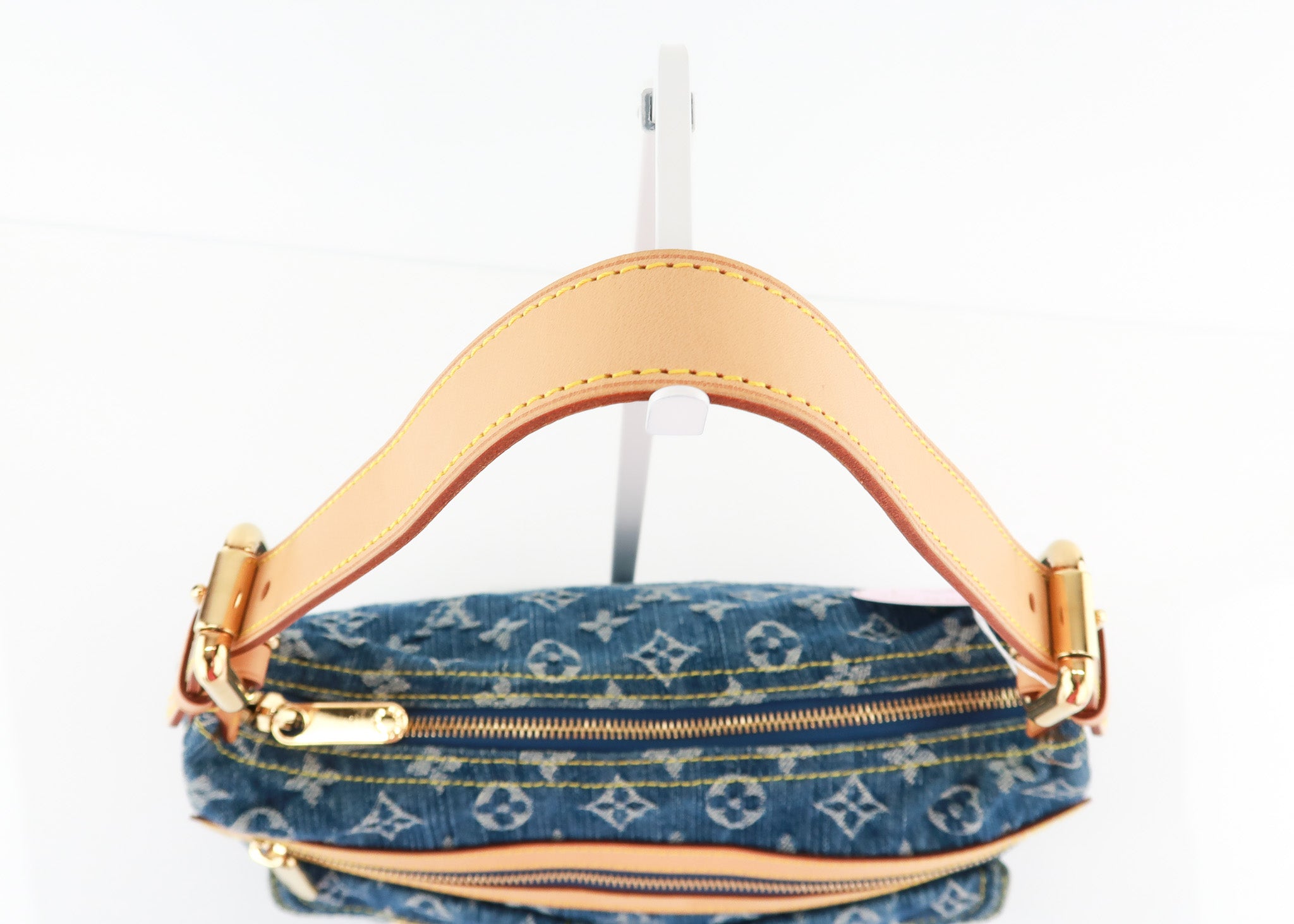 Exterior: Denim is bright and clean, Leather is light patina