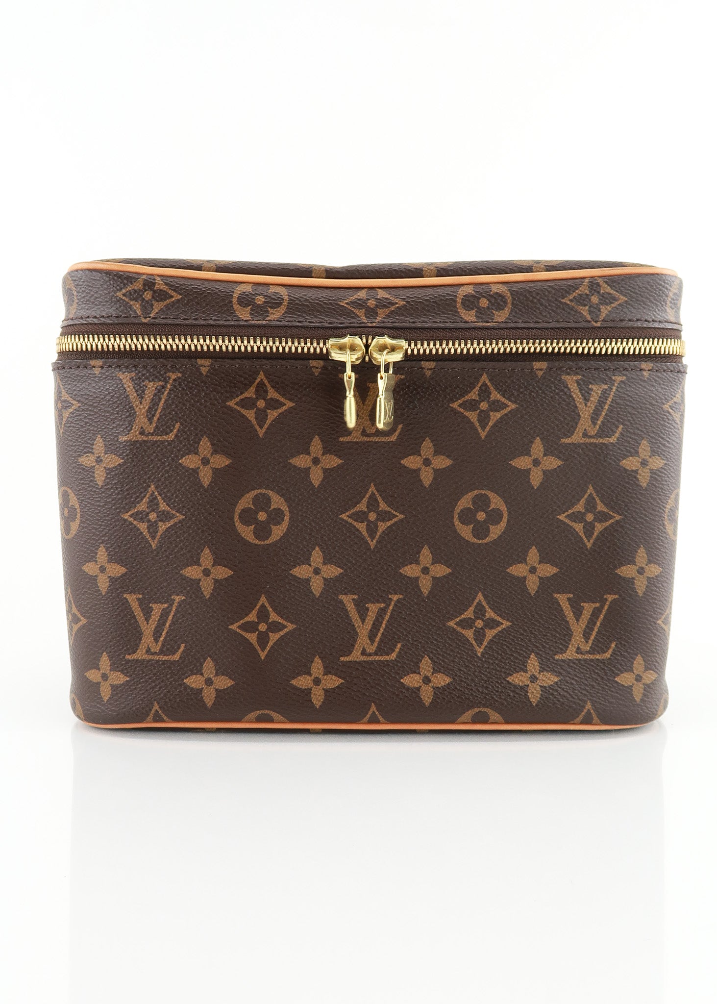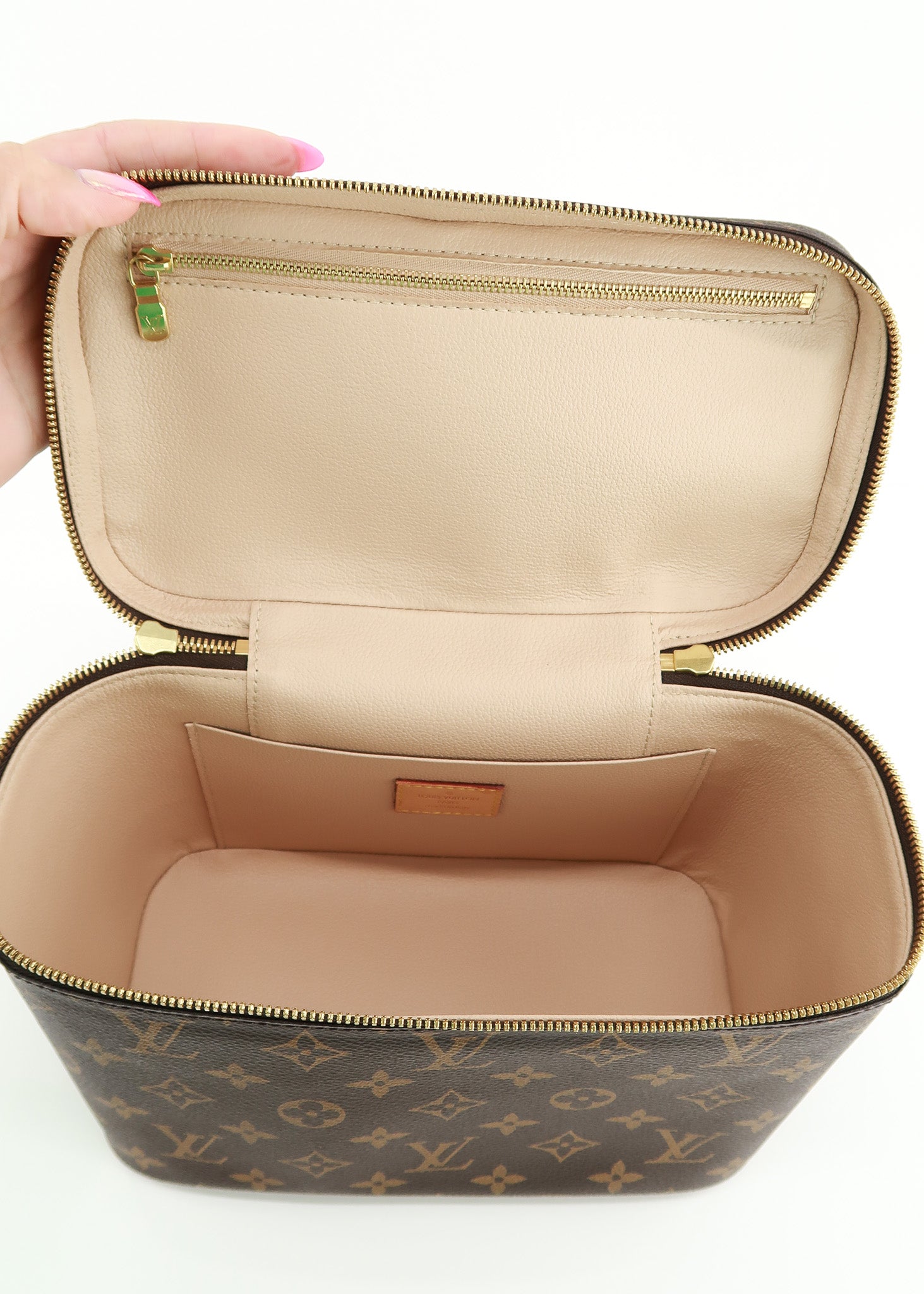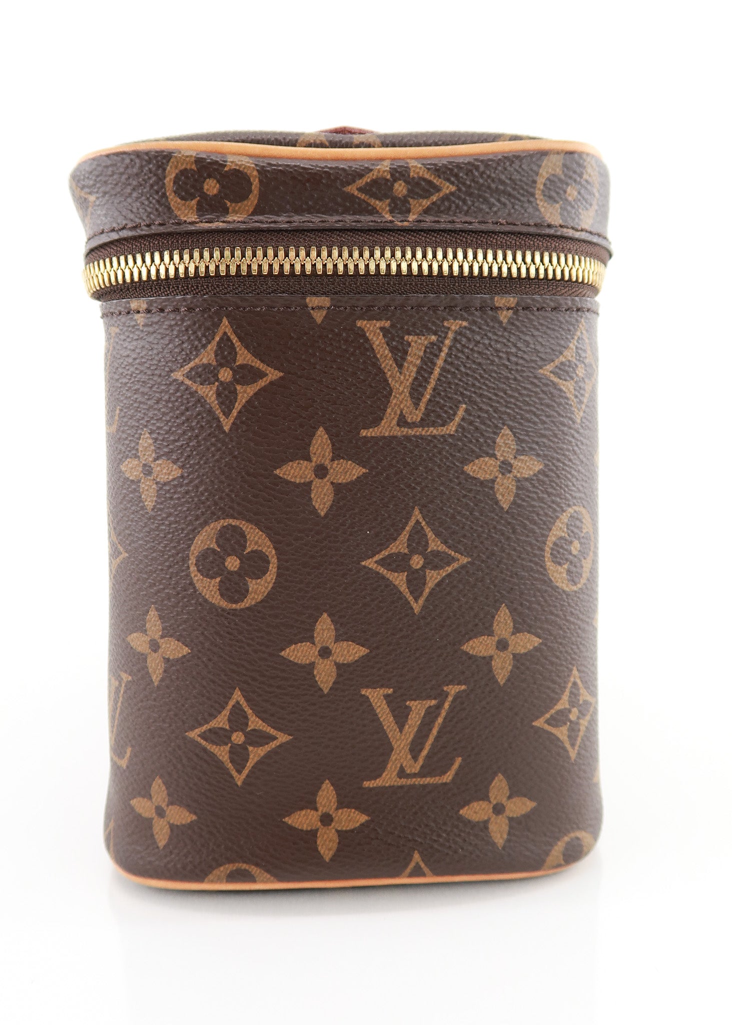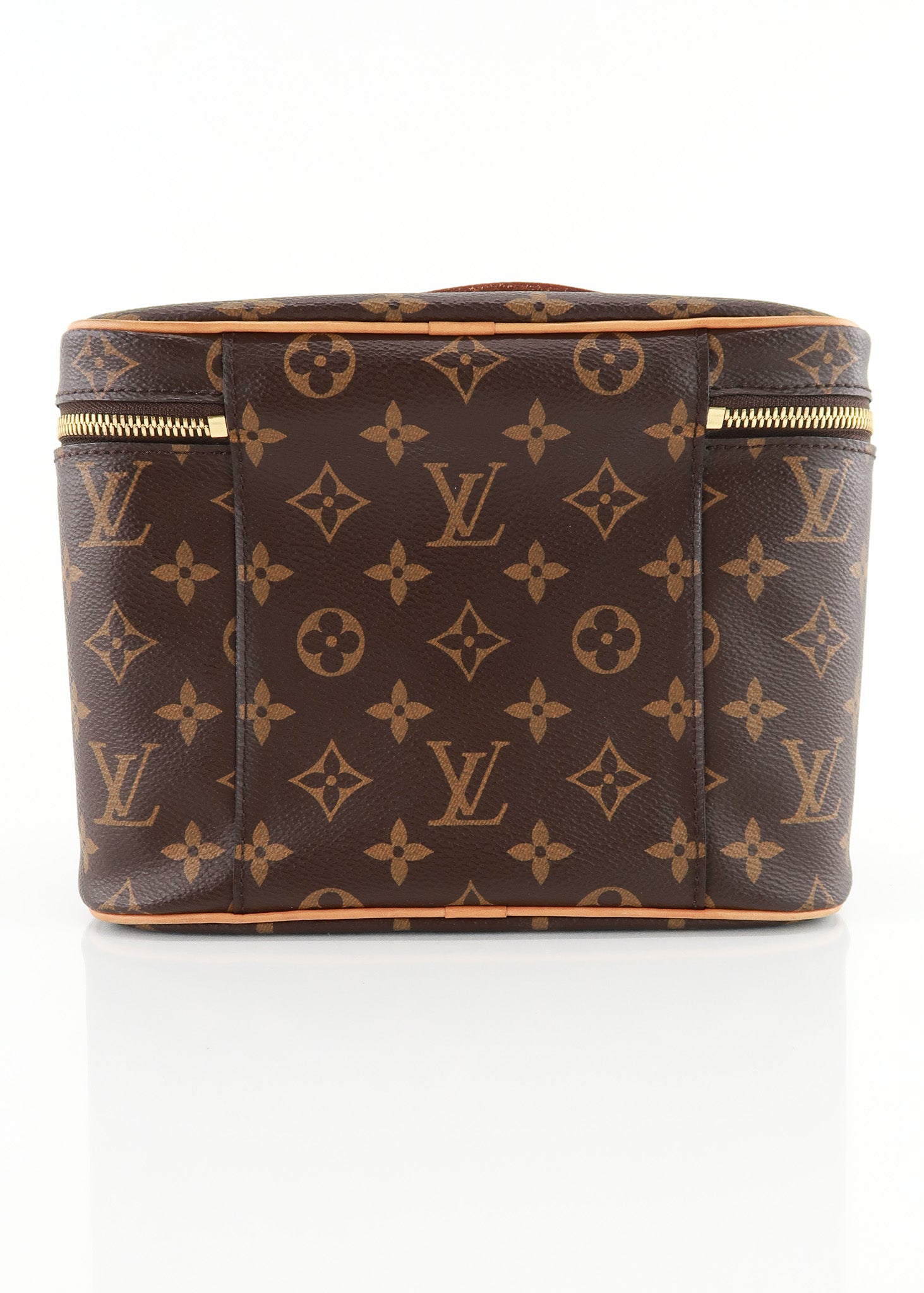 This Louis Vuitton Monogram Nice BB vanity case features a boxy design, zipper closure, waterproof interior, zipper pocket on inside top lid, side wall pocket and large open space to easily story your items. Great for bottles and storage that needs to be upright. Designer Arm Candy guarantees 100% authenticity of this item. See pics for more details.