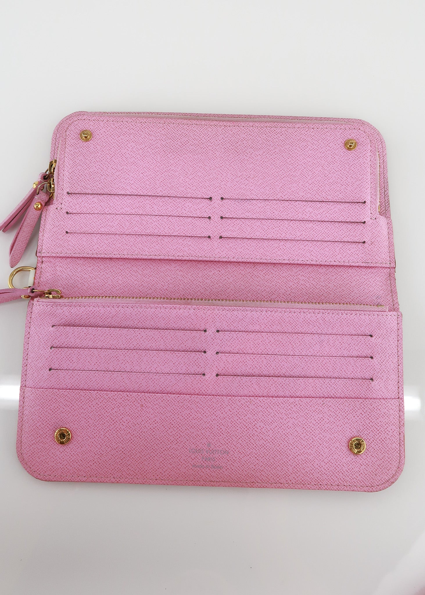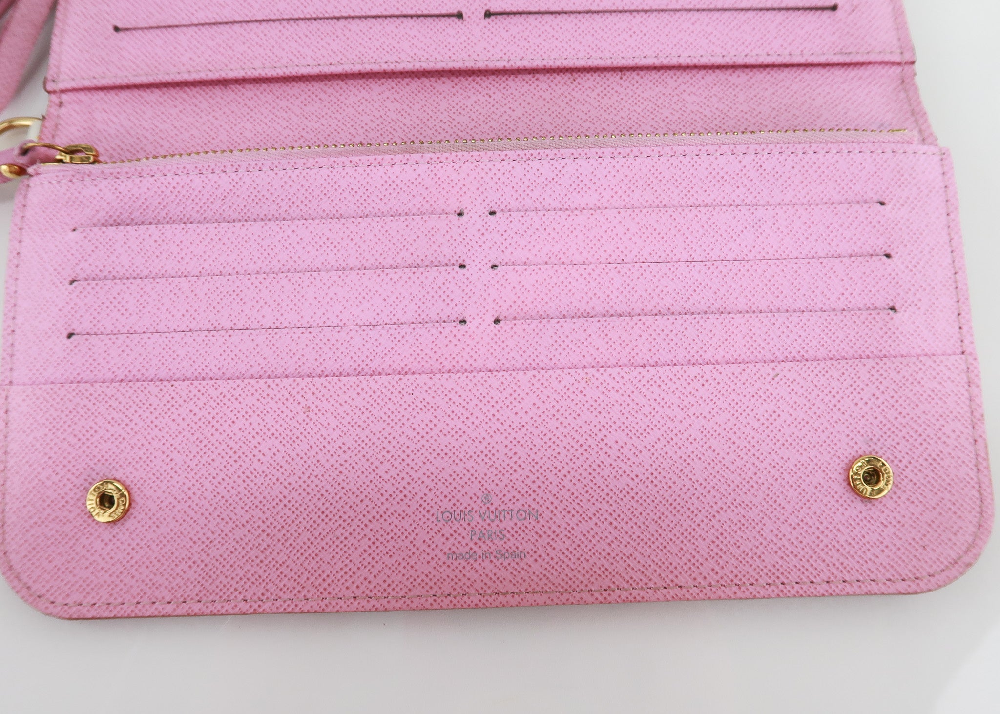 This Louis Vuitton Multicolor Insolite Wallet features the limited edition Takashi Murakami White Multicolor print, double snap closure, 12 interior card slots, side wall pockets, two change pockets that zip to open and a ring on the side that you can attach your Keepes phone charms to for a wristlet look! Designer Arm Candy guarantees 100% authenticity of this item. See pics for more details.