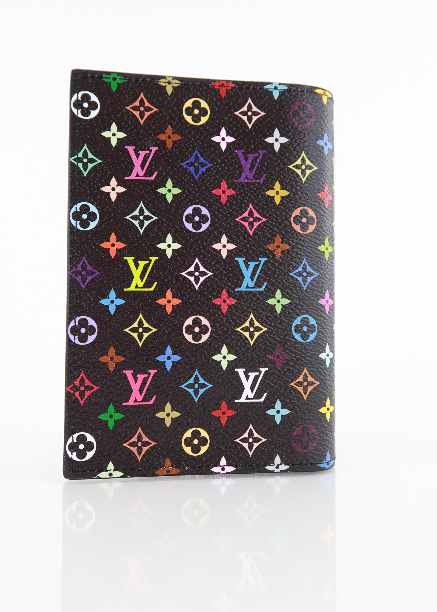 Limited edition and sold out in stores! This Louis Vuitton Takashi Murakami Passport Holder in multicolor black from the limited edition 20th anniversary Takashi Murakami collection features a bifold design, monogram body with black interior, left interior has 5 card holder and a side pocket, right interior has a side pocket for your passport. Not traveling? Use this as a mini agenda or list holder! Designer Arm Candy guarantees 100% authenticity of this item. See pics for more details.