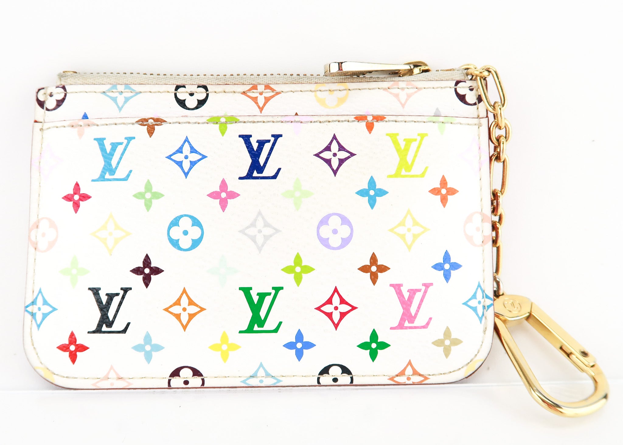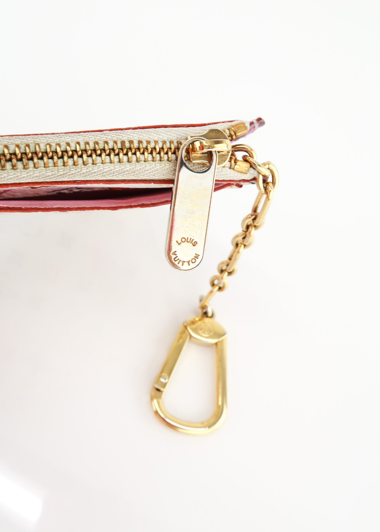 Limited edition alert!! Don't wait to grab this key pouch as they are no longer available at LV! This key pouch features a zipper top, back pocket and keychain making it easy to attach to your keys! The monogram print is in bright colors making it fun and easy to stand out! Inside is a bright pink. Designer Arm Candy guarantees 100% authenticity of this item. See pics for more details.