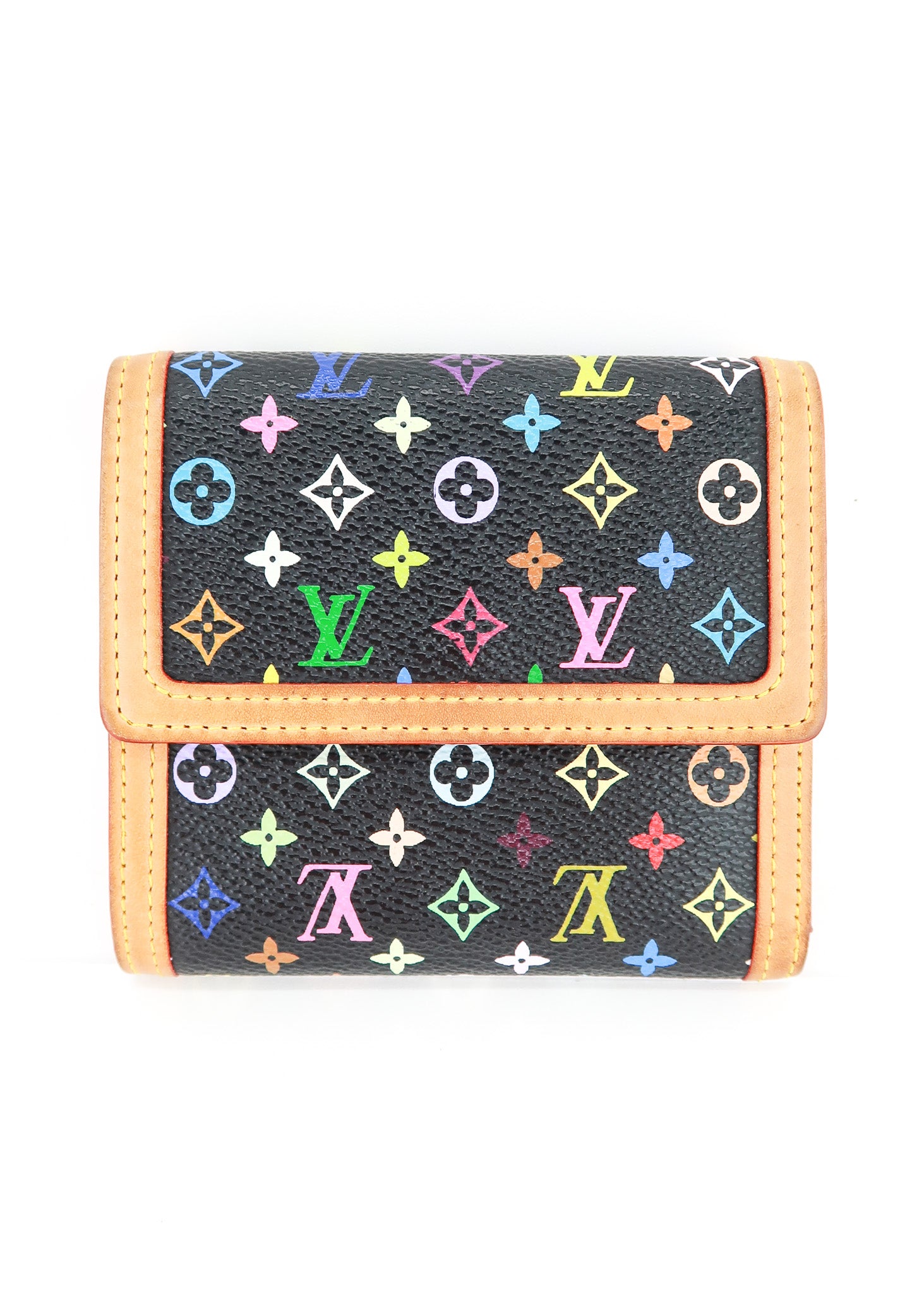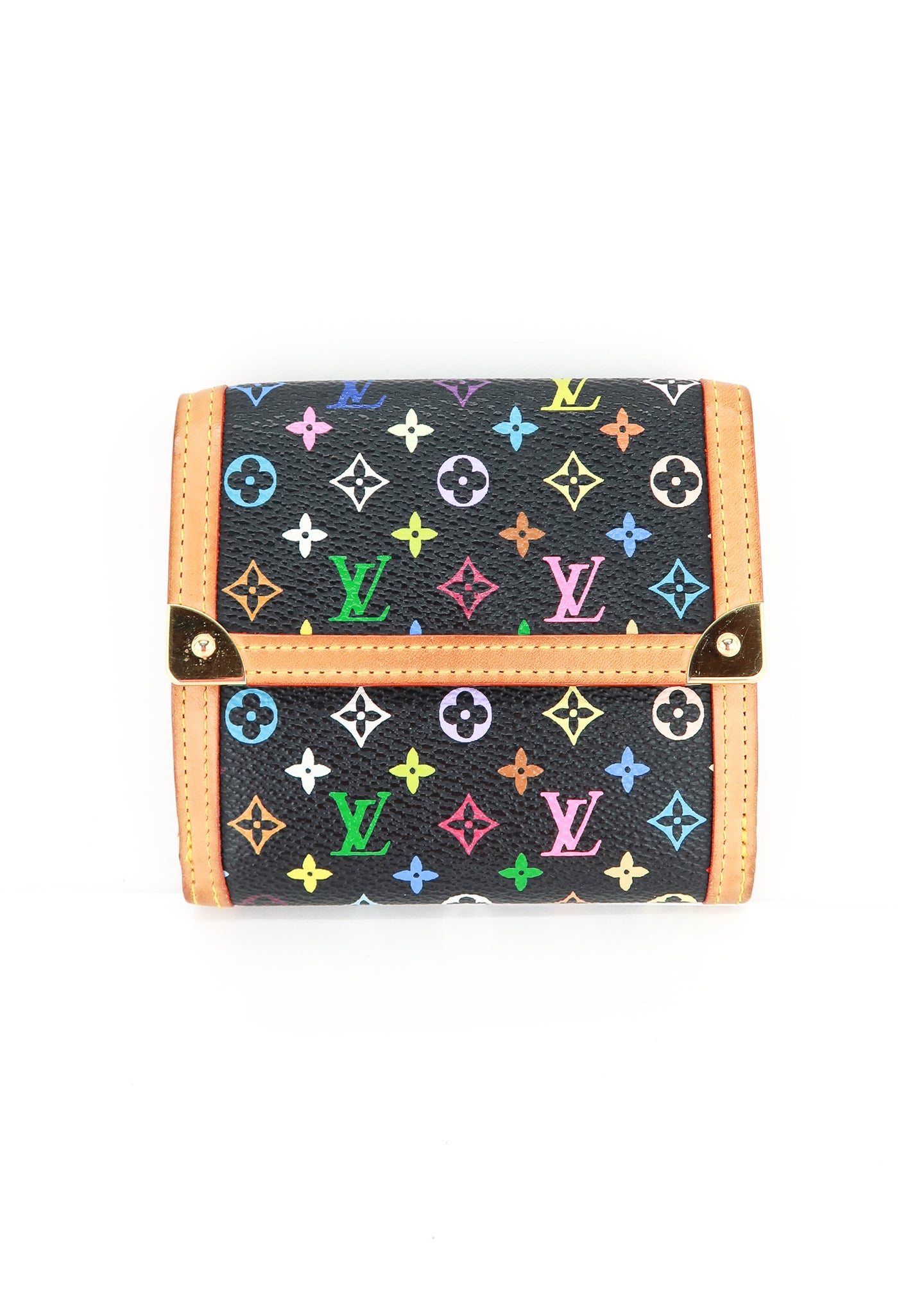 This Louis Vuitton Multicolor Porte Monnaie in Black features a compact size, snap closure on both side, one side with a change pocket, another with card slots and a bill holder. From the original Takashi Murakami collection in the early 2000's! Designer Arm Candy guarantees 100% authenticity of this item. See pics for more details.